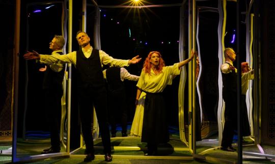 Ona i On – zawieszeni poza czasem i przestrzenią, której estetyka przywołuje na myśl świat cyru, kabaretu, rewii, jarmarcznego panoptikum – zabierają nas w podróż przez kilka stuleci. Podczas tej wędrówki poszukują jednak miłości i partnerstwa.